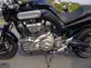 Celle là venait de Côte d'Ivoire avec Alain, un tout nouvel adhérent pas déçu de sa première balade avec le club. C'est une full power US avec Vboost de 145 ch. Le webmaster l'a essayée et confirme : en dessous de 6000 t/mn t'as un Vmax normal français, au dessus t'as un avion de chasse. En Metzeler la partie cycle ne suit plus mais çà fait partie du charme et de la légende. Petit détail : zone rouge à 9500 t/mn au lieu de 8500, et elle y monte vite ! |