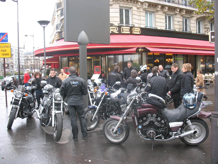 A Conflans Sainte Honorine, le Vmax de Thierry calait dans une épingle et décidait de s’arrêter là. Après lui avoir mis les trompettes à l’air et tapoté les cuves de carbu, le V4 acceptait à nouveau de donner de la voix et sans plus attendre nous nous sommes attablés à l'Armagnac de Bigorre sur les bords de l’Oise et non sur les bords du Gave de Pau.