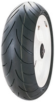 Le pneu avant subit des forces différentes. A noter que l'AM20 pour l'avant, développé à partir de l'expérience TT (Tourist Trophy) a été spécialement conçu pour les superbikes lourdes des années 80 auxquelles le Vmax s'apparente.