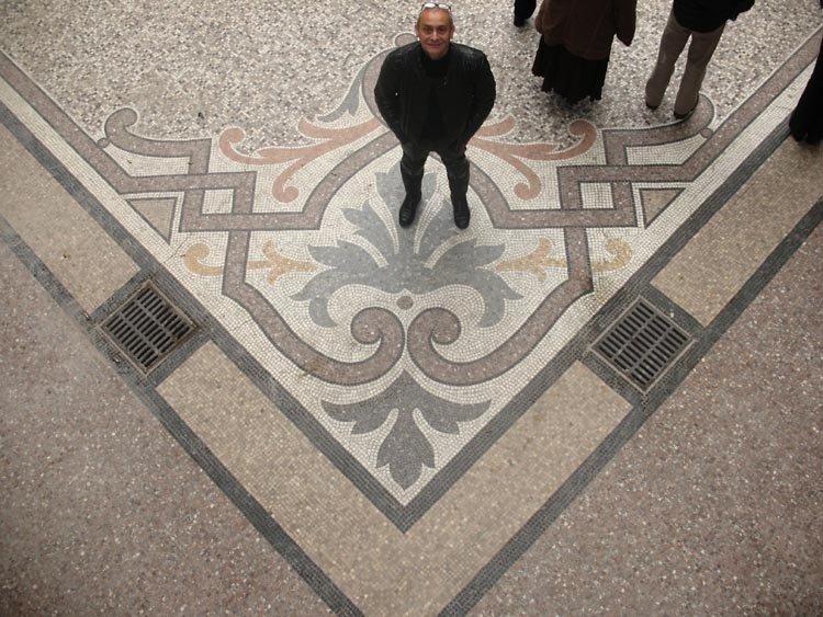 Jean-Louis sur la mosaïque d'une des cours centrales.