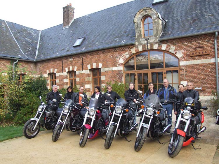 Soirée étape au 1748, une ancienne ferme du XVIIIème perdue au milieu de nulle part et transformée en hôtel ***. En fait c'était les écuries du château de Bernouville, un peu délaissé à côté, et ayant appartenu au Maréchal de Louis XV Chastenet de Puységur, que s'il avait entendu ronfler nos Vmax dans sa vaste cour il en eut avalé sa particule...