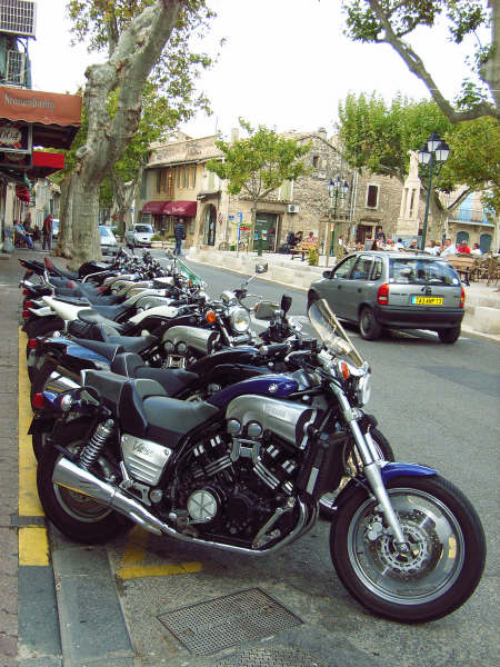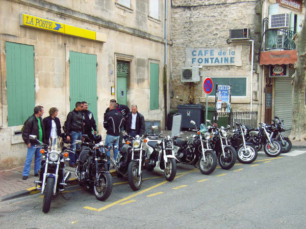 A Arles, 2 autres Vmax, Fabien d’Alès et Vincent/Elodie de Remoulins, nous rejoignent. Après un repas à Maussane au pays de l’olive, les Alpilles sont à nous. Fête de l’olive à Mouriès, brocante à Fontvielle puis sodas en terrasse avant le retour. Thierry (futur membre) nous à confié qu’il a craqué en cliquant sur le bouton de la commande du 1700 ! Prochain rendez-vous samedi chez le concessionnaire Yamaha de Montpellier pour découvrir la brute.