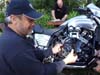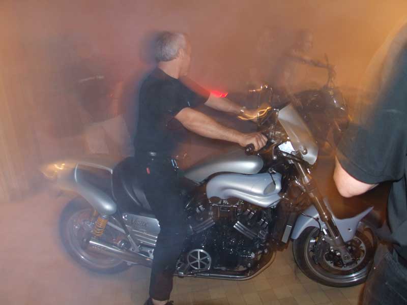 les dégats de son burn de la veille. La moto