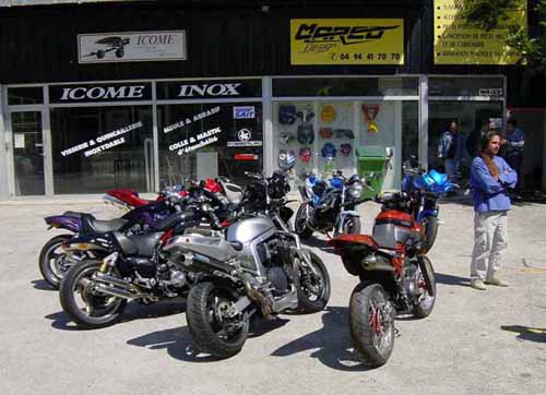 Tout en discutant, nous entendons un vrombissement dans la rue, Marco à aussi l’oreille musicale et me dit : "c’est Phil " (Black Mutant). Très beau Vmax noir, gavé au NOS et tout et tout, mais la liste serait trop longue. (voir l’article dans Génération Moto). C’est autour d’un verre que nous avons continué à parler motos et surtout Vmax, je voulais, par ces quelques lignes remercier Marco et Phil de leur accueil. Et je ne peux que vous conseiller si vous êtes dans la région, d’aller rencontrer Marco, un artiste des temps modernes. |