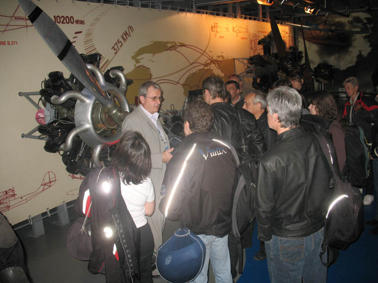 Au musée Safran, le club écoute les explications de Bernard, notre guide privé.