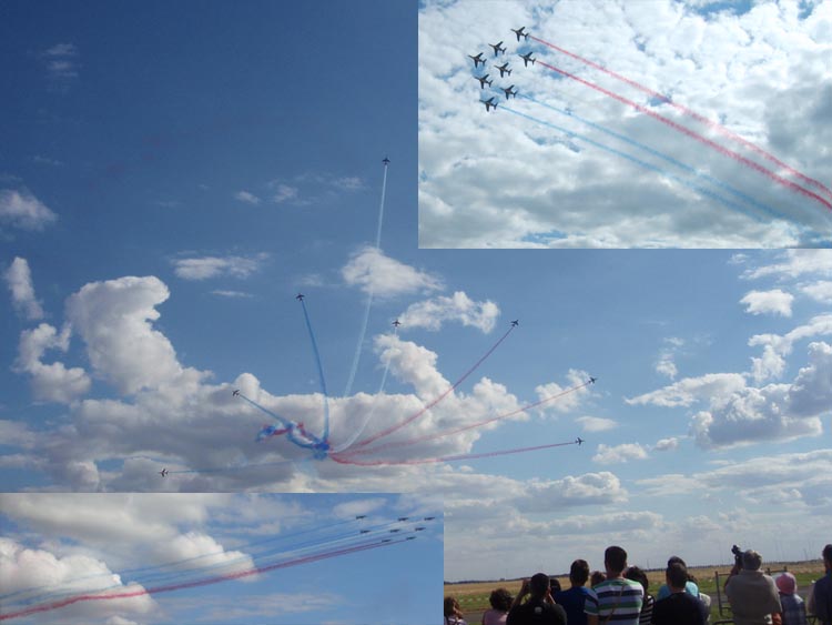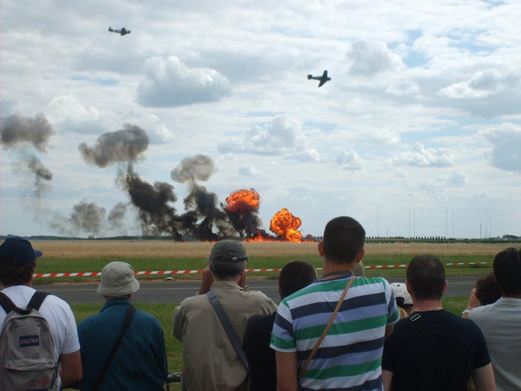 Se sont enchaînés ensuite sous un ciel magnifique de bleu et de nuages hauts, voltiges, simulations d’attaques et de bombardements et en apothéose, la Patrouille de France avec une exhibition de 25 minutes avec 8 jets.