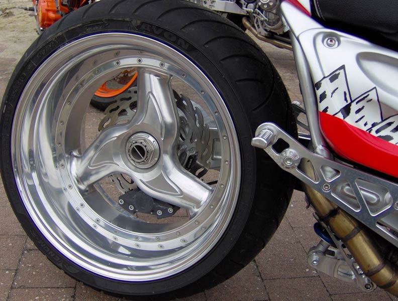 le motard et la moto), avec leur stand, une des Raats machines