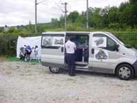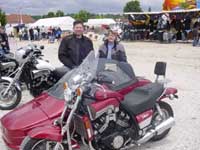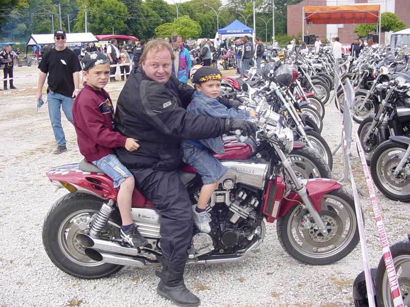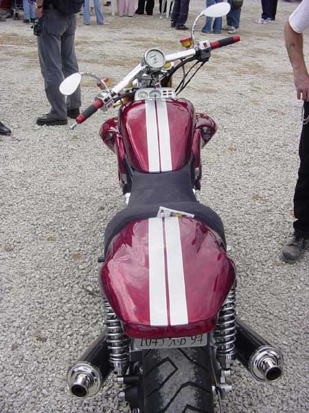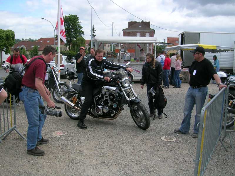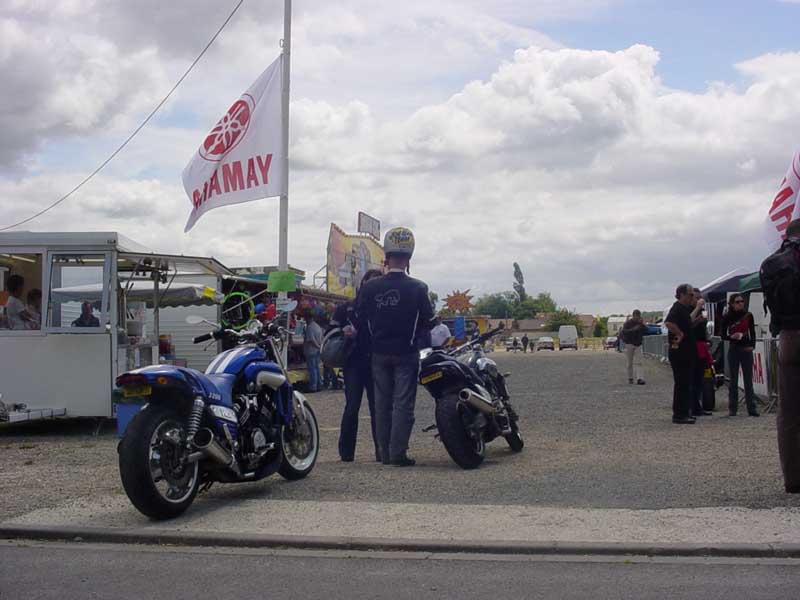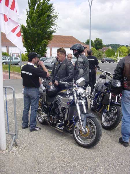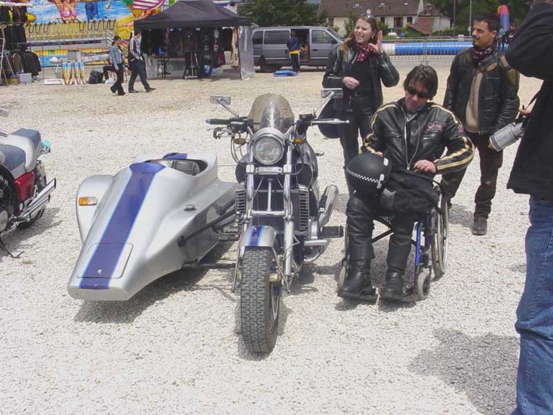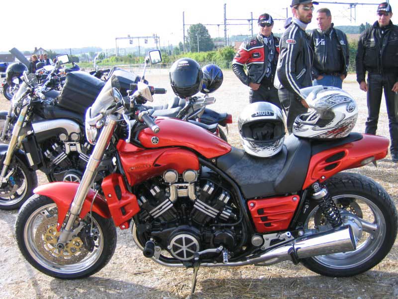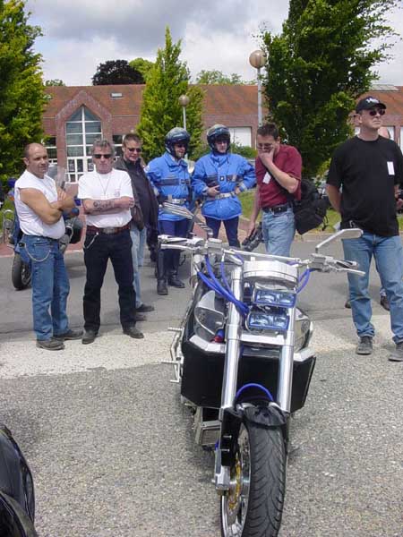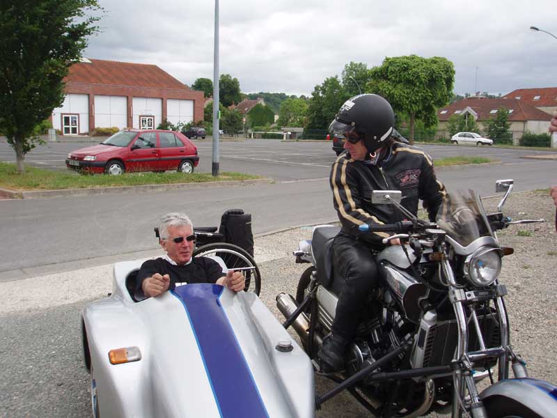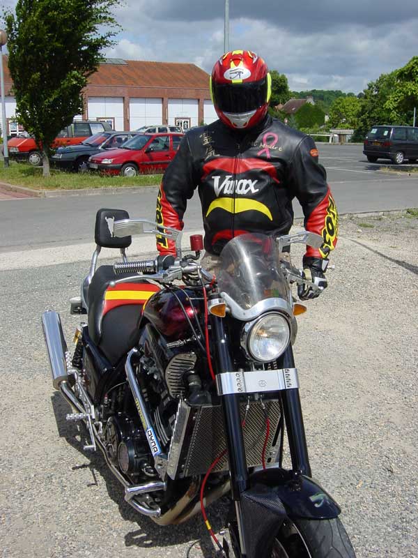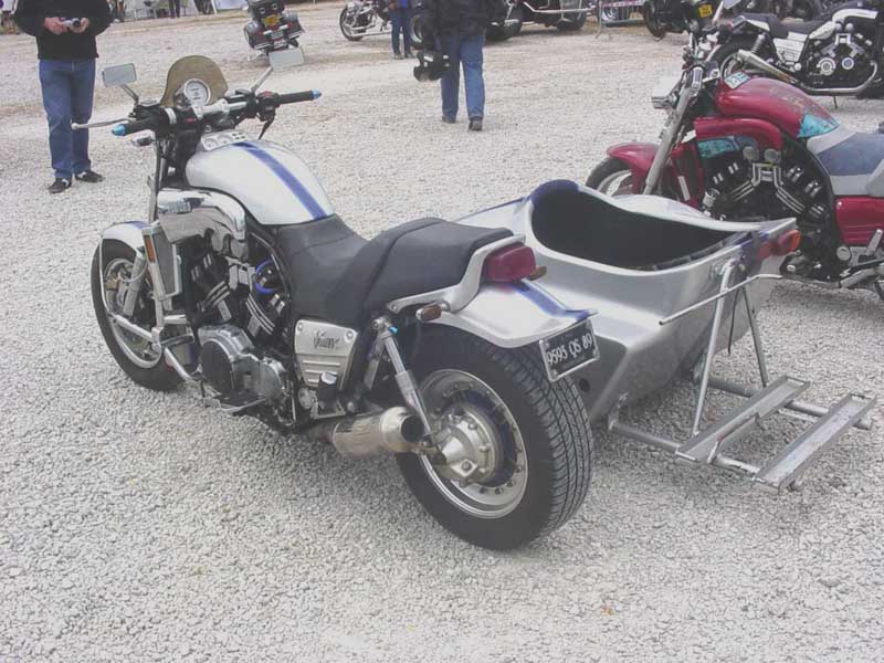 Il y a un réservoir supplémentaire dans le panier. Dedans t'es comme dans une monoplace et tu ne perds rien de la vie du Vmax à côté. Gérard, envoies nous tes coordonnées qu'on puisse t'inviter. A gauche un autre side venu de l'est de la France. Des gros rouleurs ceux là, on les avait aperçus à Scheveningen, cette fois ci on a pu mettre des visages dessus.