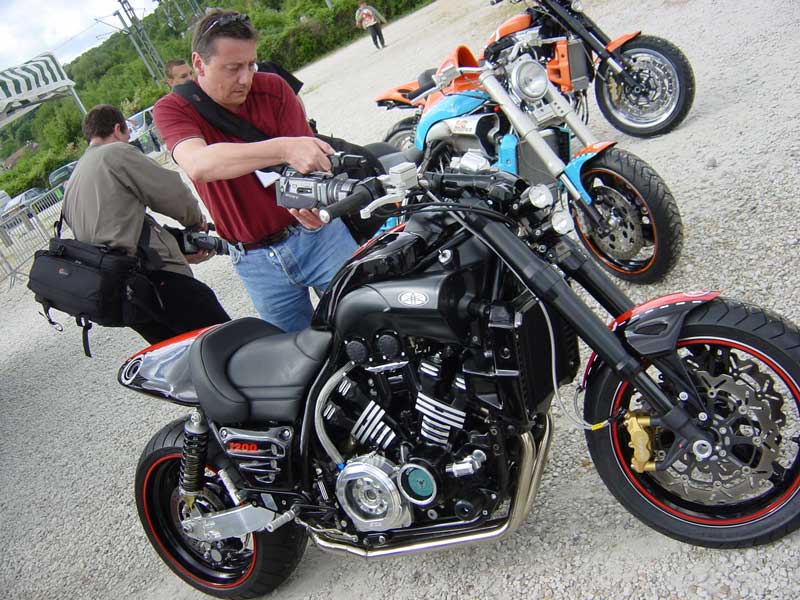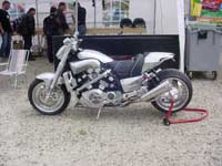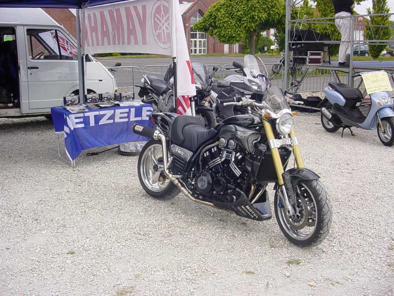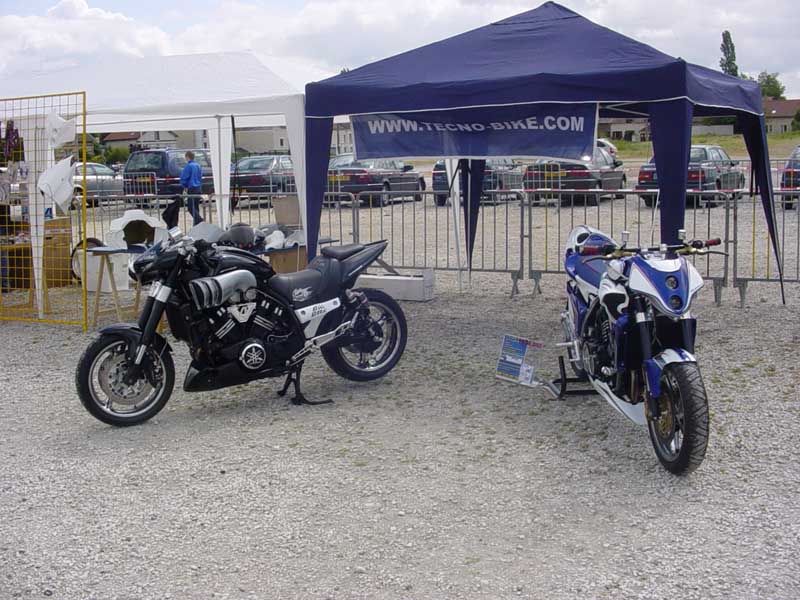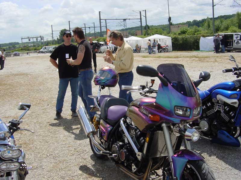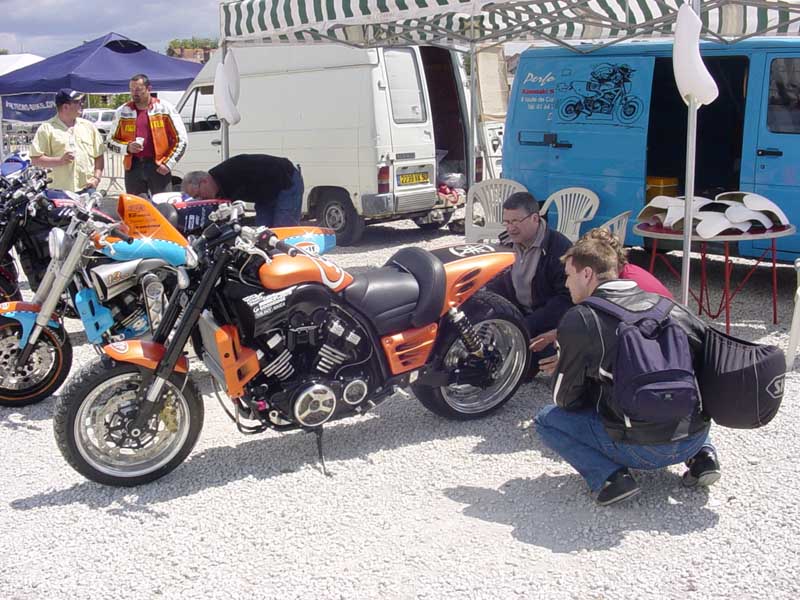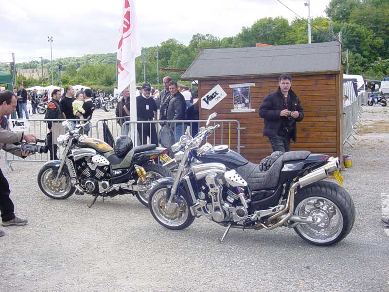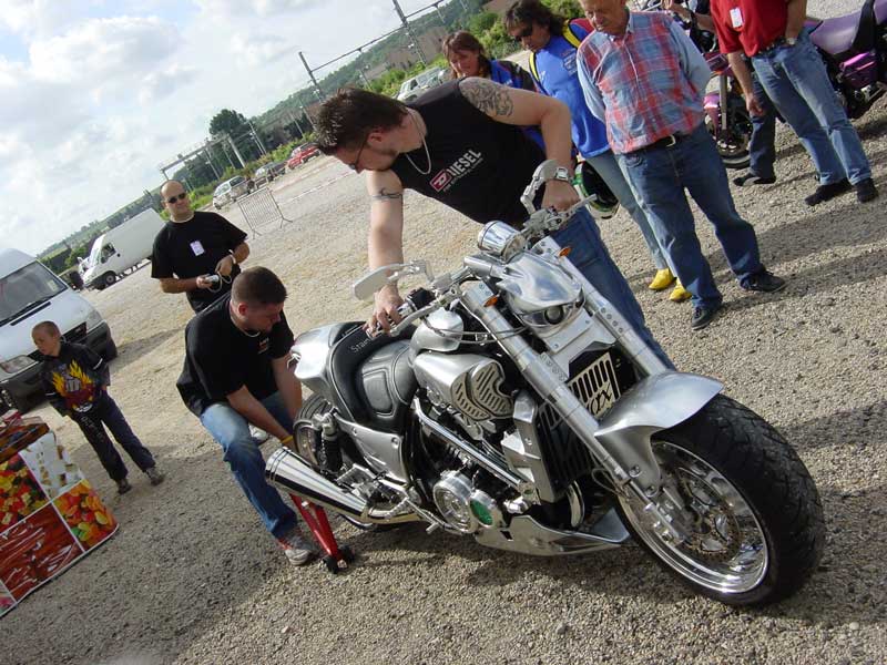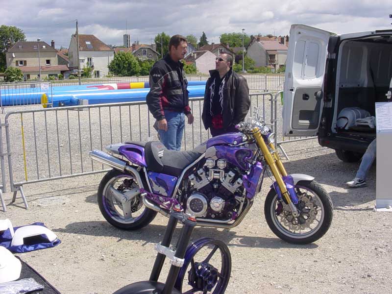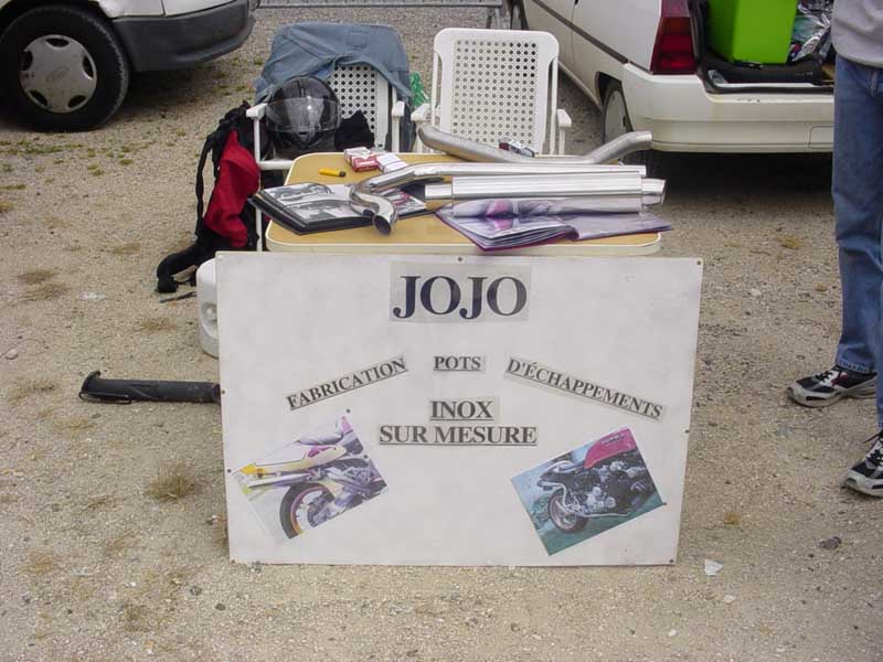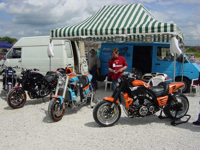 A droite JOJO proposait des pots en inox sur mesure (il a fait ceux de Deep Blue). Vous pouvez le contacter au 06.60.13.61.90. Stands de cuir et divers forains et manèges complétaient le village d'exposants. | |||||