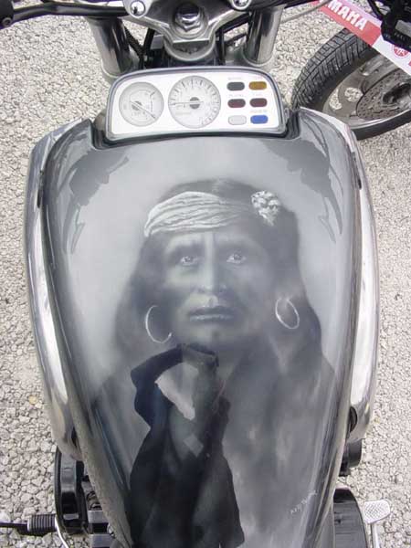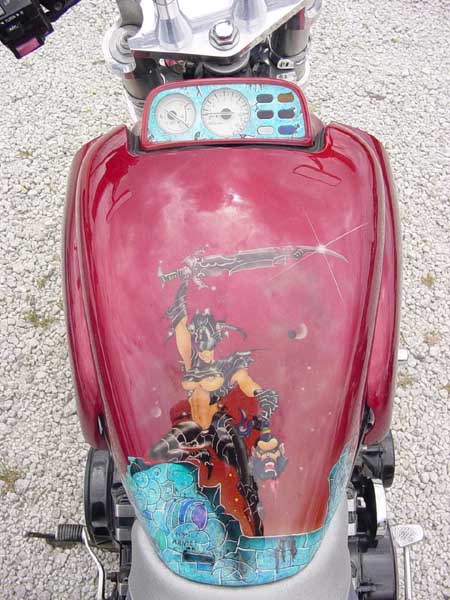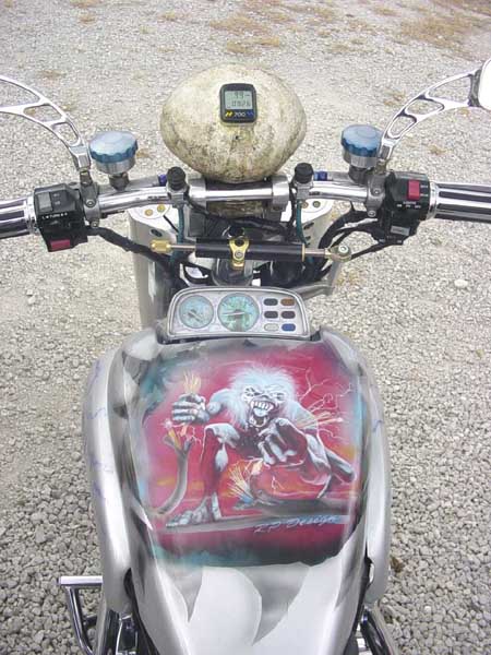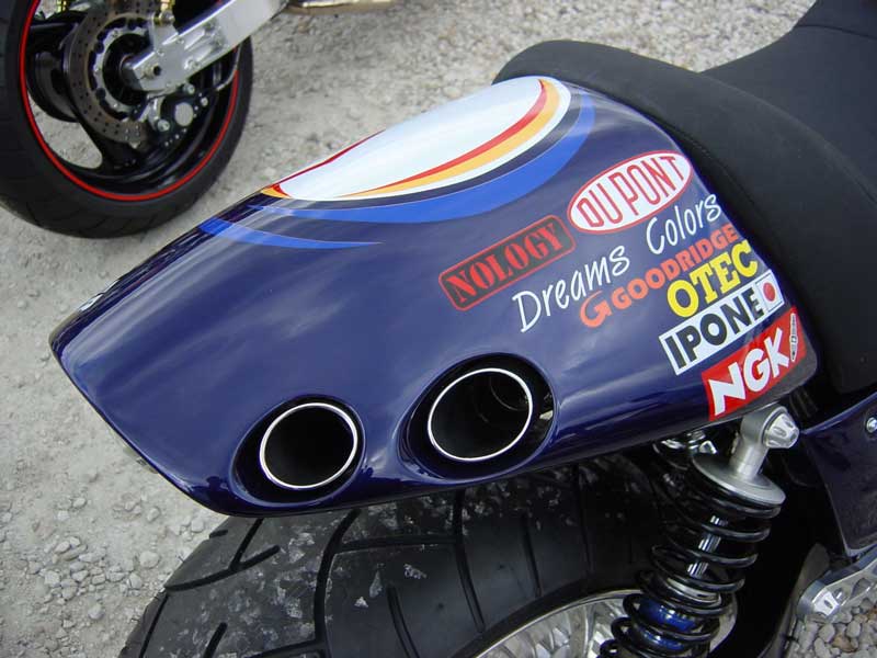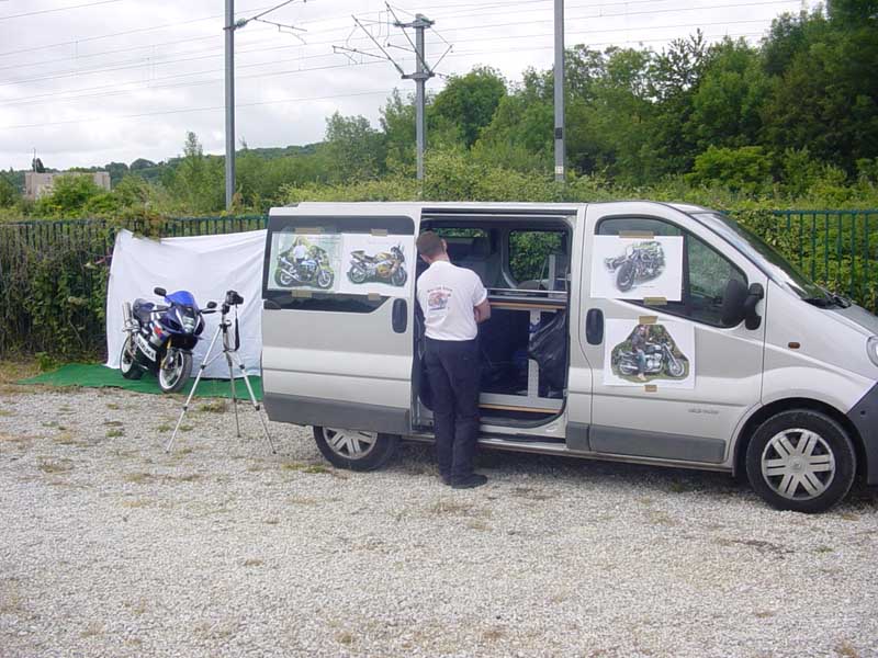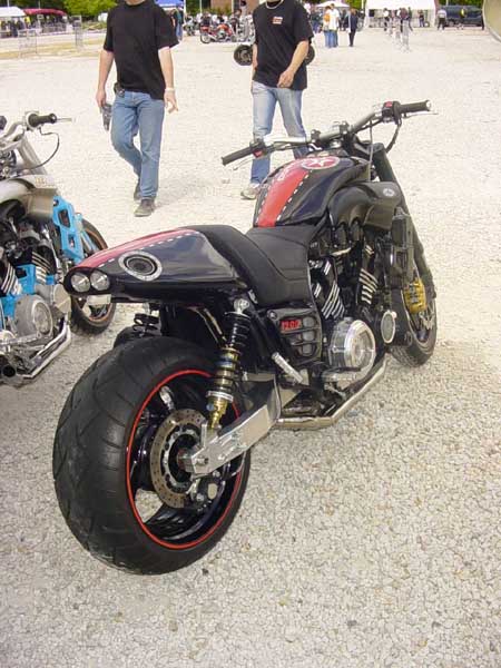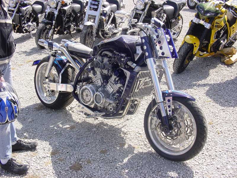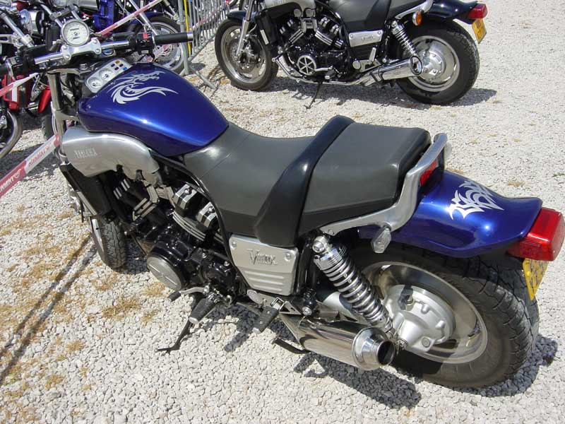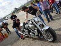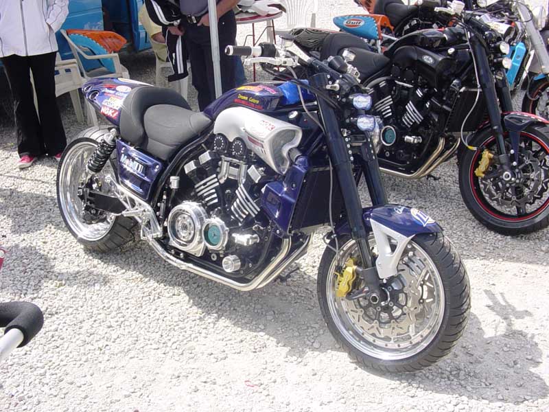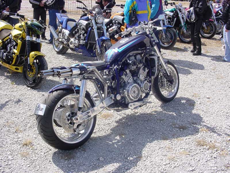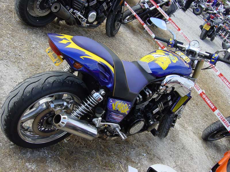 A droite JOJO proposait des pots en inox sur mesure (il a fait ceux de Deep Blue). Vous pouvez le contacter au 06.60.13.61.90. Stands de cuir et divers forains et manèges complétaient le village d'exposants. | |||||
