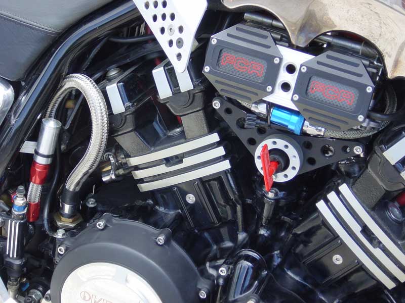 | La "Stainless" vue à Scheveningen, présentée par le Hollandais Raats V-Max Motoren. Petit détail : même les arbres à cames sont visibles au travers d'une petite fenêtre. En savoir + : http://www.v-max.nl | ||||||