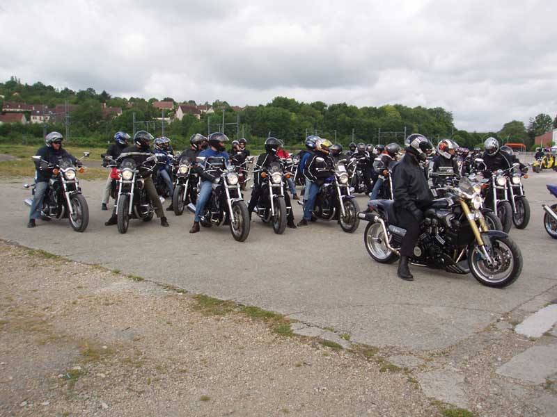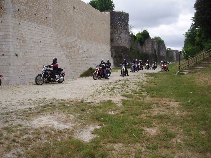 Dimanche, une majorité d'étrangers avaient repris la route pour être à l'heure aux ferries ou au boulot lundi, mais il restait encore pas mal de Vmax (photo du centre) et en tout ce sont 200 motos toutes marques et trikes qui ont pris la route de Provins en un gigantesque convoi. Séance photo au pied des remparts de la cité médiévale, puis pot au club moto local, le Top Moto 77, cloturaient la matinée avant le retour à Coulommiers pour un dernier déjeûner sous la tente du MC Briard avant de se séparer dans l'après-midi.