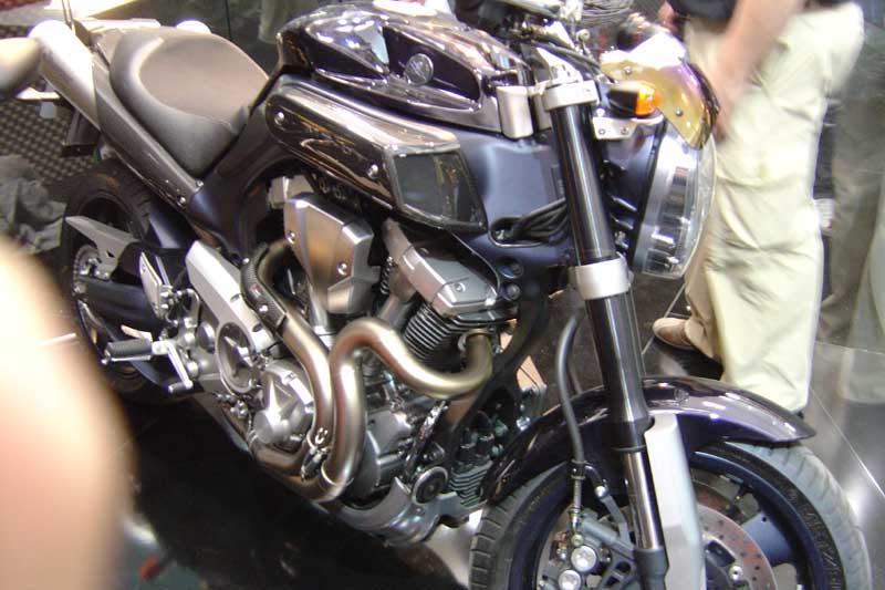 La MT-01 est entrée en production. Ce concept bike Yamaha a été présenté le 13 juillet dernier en comité restreint sur une île grecque et va donc être commercialisé. Il a été ensuite présenté au public le 14 septembre au salon de Munich. Cette moto ne peut laisser un possesseur de Vmax insensible : roadster de 1700 cm3 avec un couple phénoménal à bas régime et un cadre de sportive. Tous les défauts du Vmax gommés et plus de patate ! Seuls bémols de taille, le look minimaliste d'inspiration Buell avec un V-twin culbuté et une transmission par chaîne... Wait and see.