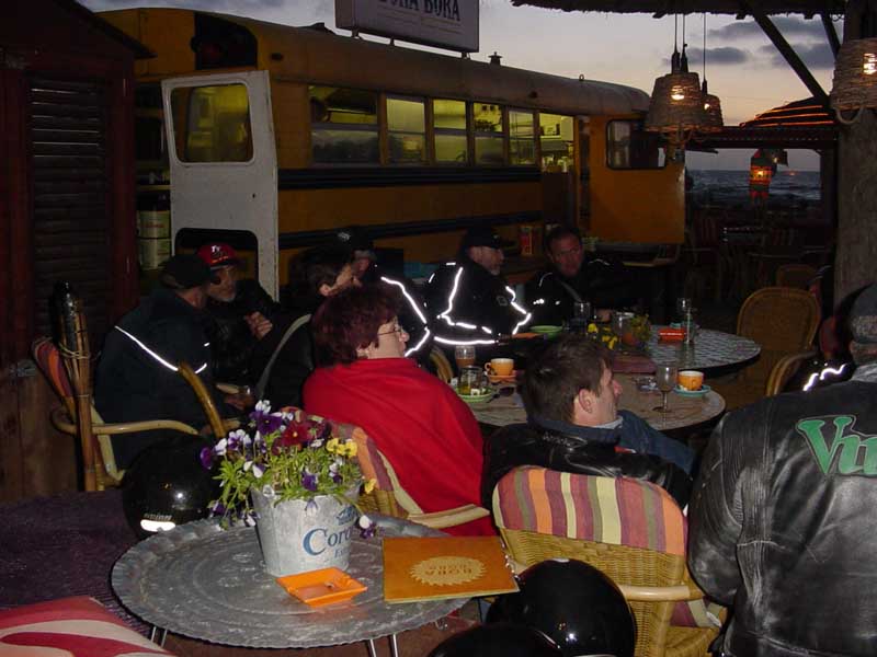 Une soirée était organisée au Bora Bora, un des nombreux restos-clubs-disco installés sur la plage. Le coucher de soleil était beau mais on est en Mer du Nord pas dans les Caraïbes ! Alors à la nuit tombée certains se sont réfugiés sous les couvertures. On a vu les Bordelais, venus en petit comité mais très organisés pour la promotion de Montalivet.
