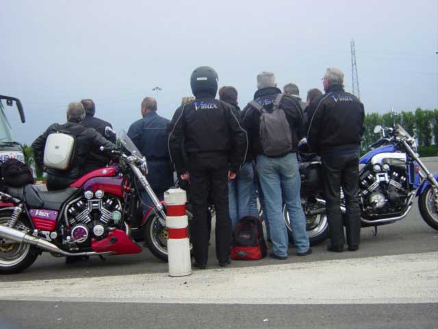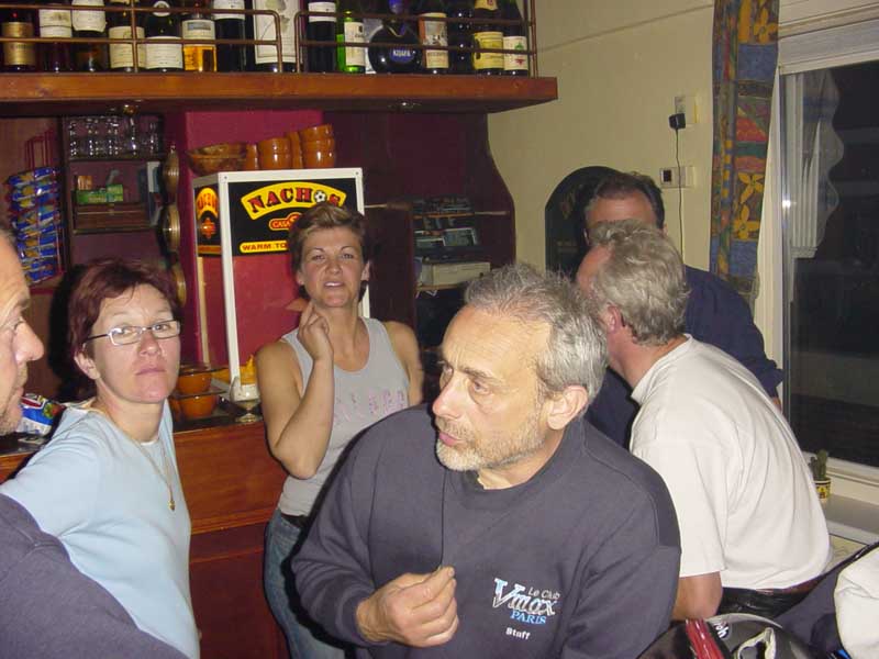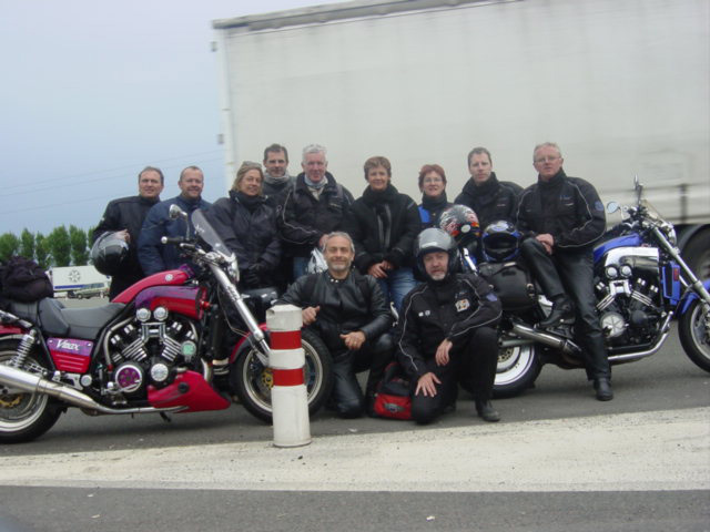 Ont participé à cette épopée : Edith et Eric G., Agnès et Jean-Luc, Claudine et Antoine, Jean-Louis, Manu, Patrice, Paulskro, RoGPS, Roland, Christophe (la sono de La Parisienne), Thierry, VmaxPierre et sa compagne, PatrickG, sans oublier Joaquim. Hiro nous a malencontreusement quitté à l'aller avec sa copine, un de ses wheelings s'étant mal terminé. On espère les revoir bientôt... plus calme.