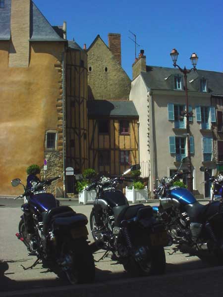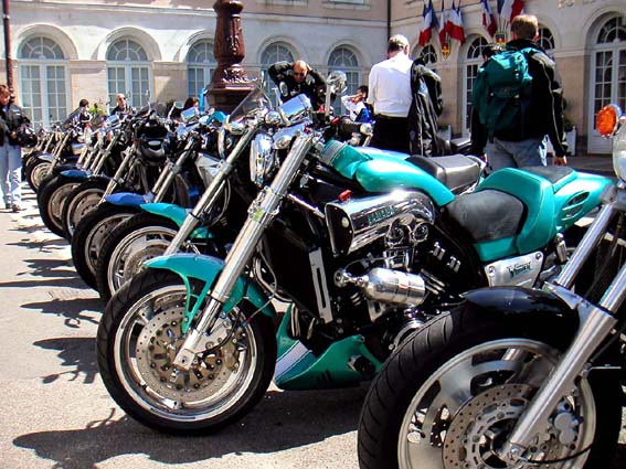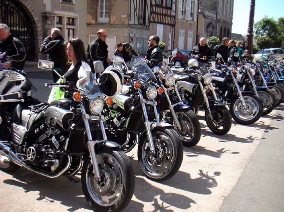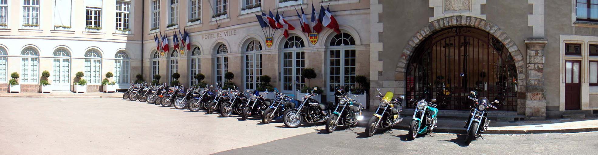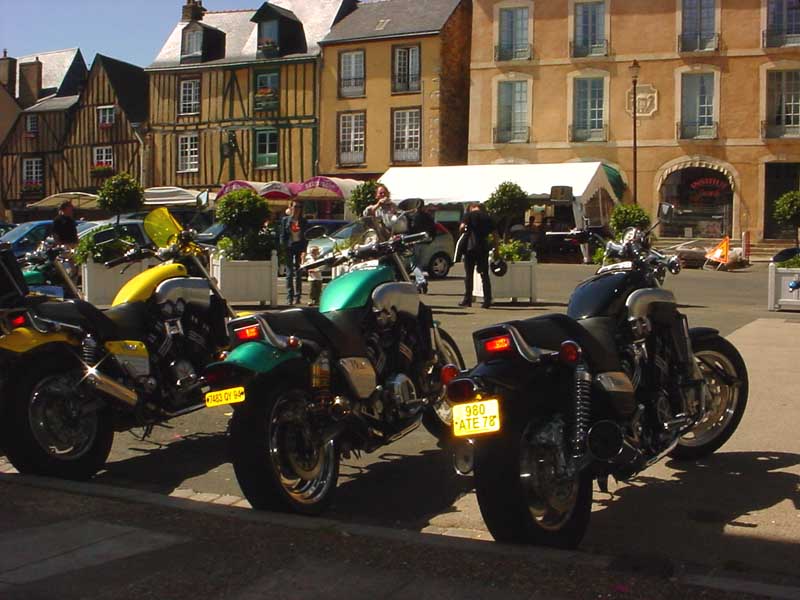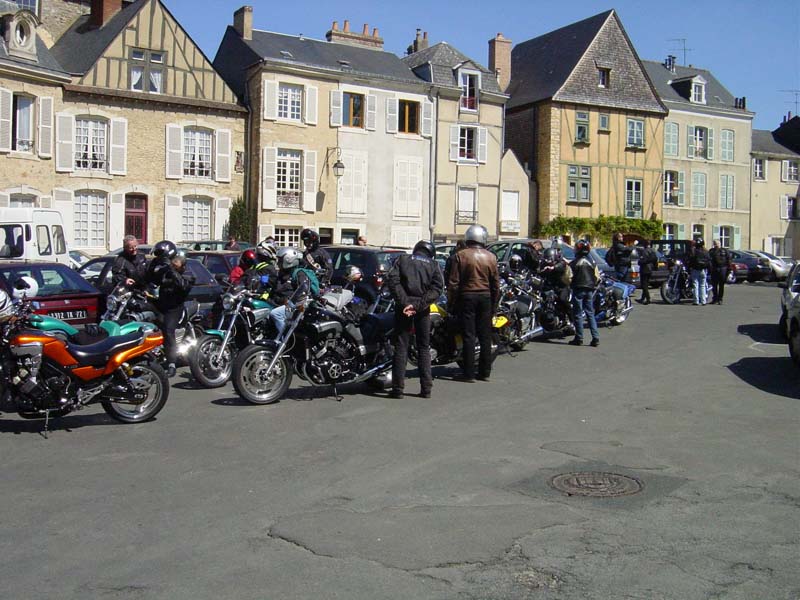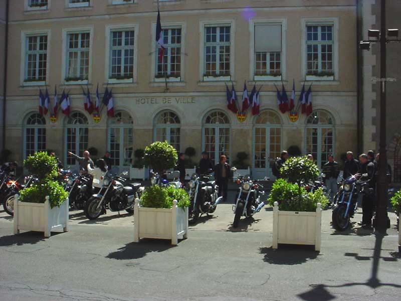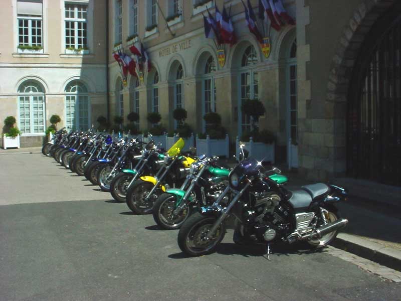 face à la mairie ou nous avions pour l'occasion aligné nos motos.