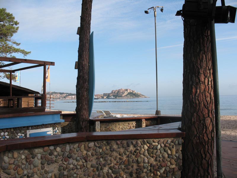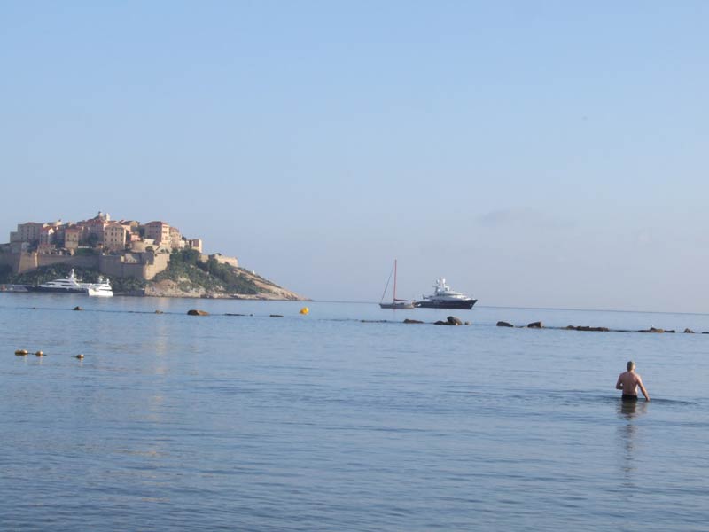 Baie de Calvi, tôt le matin. Le web ne pouvait manquer d’aller piquer une tête pour un aller-retour à la citadelle à la nage (enfin, un peu moins).