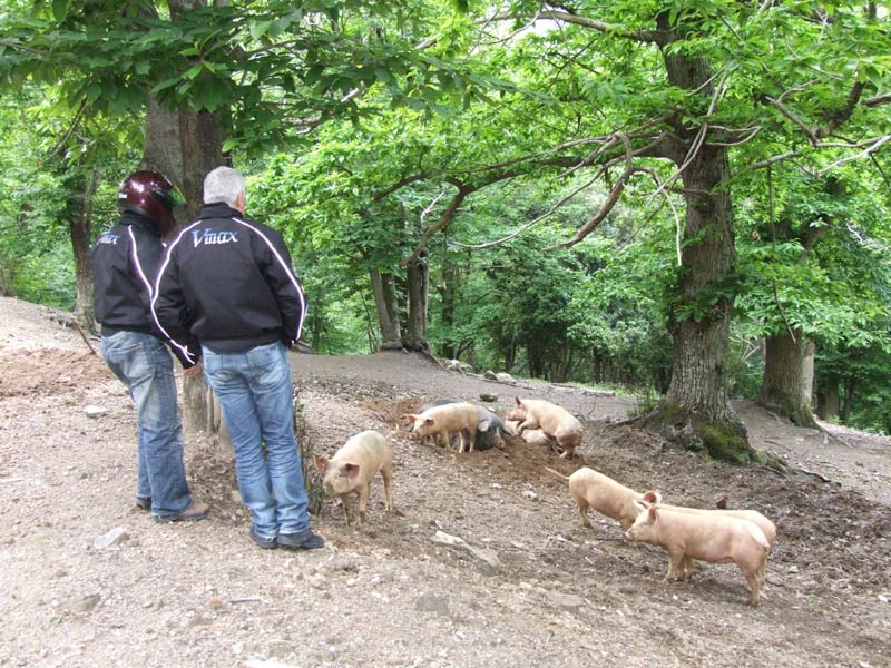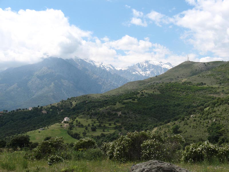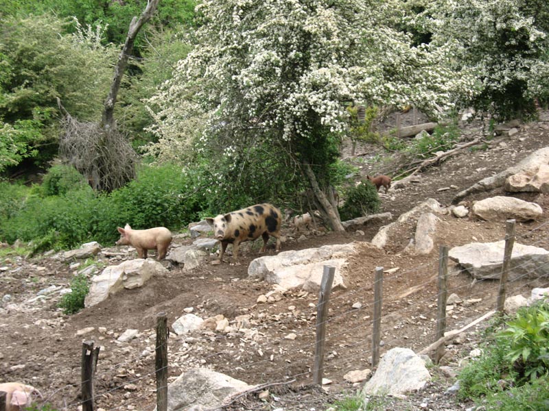 Nous redescendons ensuite à Corte et là Pascal nous entraîne vers son pays, sa région, celle des cochons sauvages, qu’il a à cœur de nous faire découvrir. « Là c’est mon oncle, là-bas c’est ma tante, ici ma cousine… ». Les routes sont de plus en plus étroites, on n’y croise plus personne, des coulées de boue ou des ruisseaux les traversent parfois…
