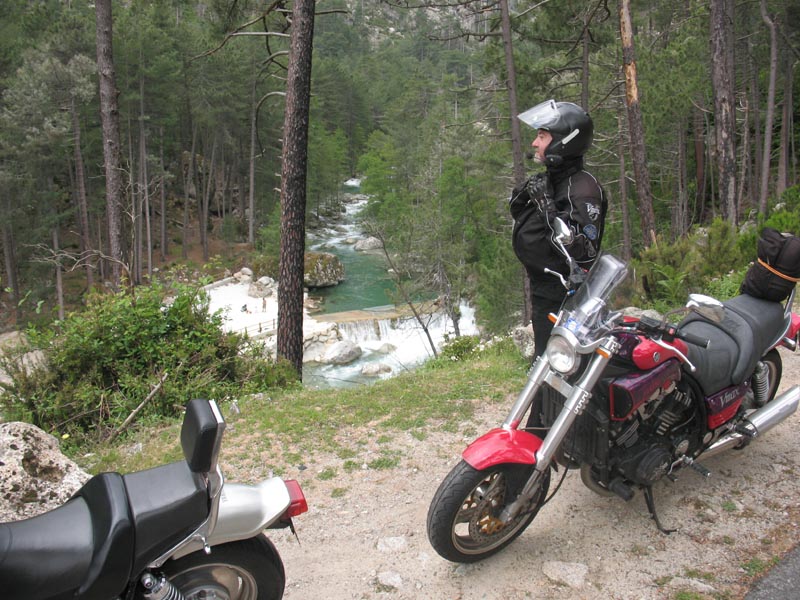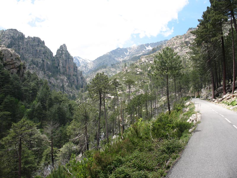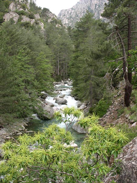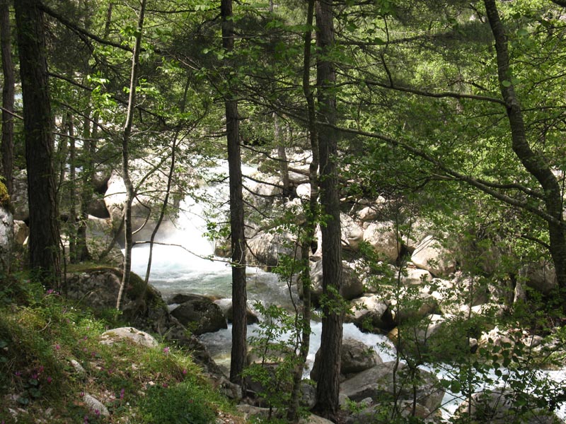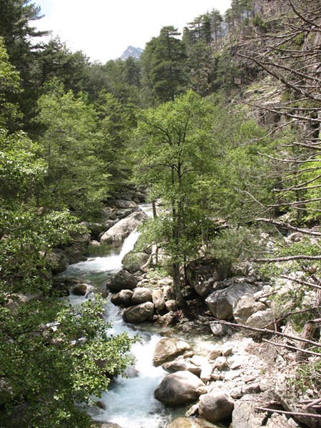 A Corte, nous faisons les courses pour un picnic à venir et Pascal nous entraîne de plus en plus profond vers la montagne, par une petite route étroite et magique, serpentant près d’un torrent dans une forêt particulièrement riche en essences diverses. Ce sont les Gorges de la Restonica.